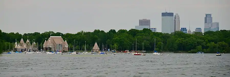 Lake Harriet (Dakota: Bdé Umáŋ, "Other Lake"[1]) is a lake in the southwest part of Minneapolis, just south of Bde Maka Ska and north of Minnehaha Creek.[2] The lake is surrounded by parkland as part of the Minneapolis Chain of Lakes. The lake has an area of 335 acres (1.36 km2) and a maximum depth of 85 feet (26 m).