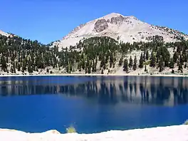 Lake Helen is a glacial lake or a tarn occupying a cirque at around 8,200 feet (2,500 m) in Lassen Volcanic National Park.[1] The lake is located to the south of Lassen Peak and west of Bumpass Mountain in the Shasta Cascades region of Northern California. Highway 89 runs along the lake's southern and eastern shore.[2] The lake is named for Helen Tanner Brodt who in 1864 became the first white woman to reach the summit of Lassen Peak.[3]