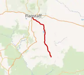| Flagstaff | 53.5 | 86.1 | No outbound access to freeway; inbound access from NB I-17 only; I-17 exit 339 | ||||
