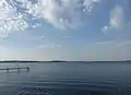 Lake Mendota, like the other lakes in the Yahara River chain, contains many native aquatic plant species, which are the primary producers of the lake and serve as the foundation for aquatic food webs as well as shelter for northern pike and yellow perch, both of which are native fish species. A 2017 ecological survey of the Yahara lakes conducted by the Dane County Land & Water Resources Department found 24 aquatic plant species, including the coontail, muskgrass, common waterweed, small duckweed, American lotus, variable pondweed, wild celery, and common bladderwort. These native plant species play a role in partially mitigating the increasing eutrophication of Lake Mendota, as they absorb phosphorus and produce dissolved oxygen, and they aid in preserving the physical structure of the lake via their root systems, which stabilize sediment and limit shoreline erosion.[30] The draining and damming of the wetlands that once surrounded Lake Mendota caused extensive losses of fish spawning areas, though about 34 fish species are still common in the lake, including the northern pike, white bass, walleye, largemouth bass, smallmouth bass, and musky.[2][31] Starting in 2006, the University of Wisconsin-Madison Lakeshore Nature Preserve began to catalogue the bird species found in and around Lake Mendota, and, so far, over 255 bird species, most of which regularly occur in southern Wisconsin, have been spotted during their annual migrations. Some of the bird species found in the Nature Preserve include the blue jay, American goldfinch, Baltimore oriole, bald eagle, great horned owl, marsh wren, and common loon.[32]