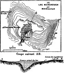 The French explorer Gaston Méry visited the lake in 1893 after a long period of drought, and found it completely dry.[5] Méry was the first French explorer to visit the region since the massacre of the second Flatters expedition. He and Guilloux were accompanied by five local Algerians. At Lake Menghough Méry met with some of the Kel Ajjer chiefs. [10]