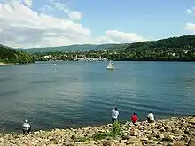 ![]() View from the east bank, with the Vitosha Mountains in the background | |