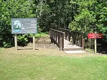 Fishers will find bass, bream, catfish, and crappie in the lake's shallow waters. The park offers 29 campsites (4 class A, 22 Class B, and 3 tent sites), but does not contain any other types of cabin or lodging.[3] A pavilion with restrooms is available near the campsites. Park interpreters guide visitors along trail walks in addition to wildlife and birding tours. Kayaking and canoe tours on the lake are also guided by park interpreters seasonally.[4] The Great Blue Heron Trail is a 1.1 miles (1.8 km) hiking trail that beginning near the children's playground and winds in a loop through the woods. Picnic tables are scattered throughout the park in open areas.