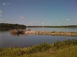 The maximum depth of the lake is 34 feet (10 m), with a mean depth 9.3 feet (2.8 m), and drainage of 11,480 acres (46.5 km2). The lake was designed as a high quality fishing lake. Facilities include parking lots, and 3 hard surface boat ramps with no motor size limit at no wake. There are fishing jetties, an accessible fishing pier for the handicapped, accessible facilities, a picnic area, restrooms, camping facilities, floating boat docks, and wildlife islands.[2][3][4]