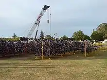 Relay bikes being prepared for transport (2007).