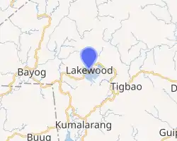 Lakewood, officially the Municipality of Lakewood (Cebuano: Lungsod sa Lakewood; Subanen: Benwa Danaw; Chavacano: Municipalidad de Lakewood; Tagalog: Bayan ng Lakewood), is a 4th class municipality in the province of Zamboanga del Sur, Philippines. According to the 2020 census, it has a population of 21,559 people. [3]