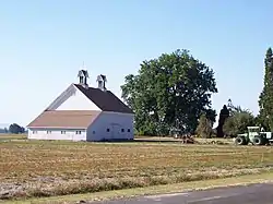 The barn is a 40 feet (12 m) by 60 feet (18 m) timber-frame building built in 1888. It was built to house horses being raised for fire and police departments of the Pacific Northwest. Its ornamented cupolas were assessed to be the finest in Linn County.[2]