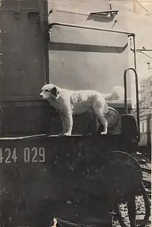 In August 1953, Lampo, then a stray dog, got off a cargo train at the Campiglia Marittima railway station in Italy and was adopted by the stationmaster Elvio Barlettani, despite the strict rail regulations.[2] Soon the dog had learned the train schedules, distinguishing the slow trains from the fast ones and how to get somewhere every day and return at sunset.[3] Almost every morning he was traveling by train from Campiglia Marittima to Piombino to accompany Mirna, the stationmaster's daughter in her way to school and then was returning to the Campiglia.