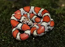 Lampropeltini is a tribe of colubrid snake endemic to New World. These include the kingsnakes, milk snake, corn snake, gopher snakes, pine snakes, and bullsnakes. At least 51 species have been recognized and the group have been heavily studied for biogeography, morphology, ecology, and phylogenetics.[1][2] The internal relationships among the genera has been disputed, but generally the most supported placement of the genera are as follows: