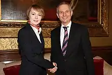 Olena Volodymyrivna Zerkal (Ukrainian: Олена Володимирівна Зеркаль, born 24 June 1973), widely known as Lana Zerkal, is a Ukrainian diplomat. Former Deputy Minister of Foreign Affairs of Ukraine for the European Integration, appointed in office in 2014. She also served for 12 years at the Ministry of Justice (Ukraine) since 2001 as the Director of the Department of International Law (2001 – 2005), Director of the State Department on Approximation of Legislation (2005 – 2011) and as the Director of the Department on Liaison with State Authorities (2011 – 2013).[2]