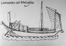 A lancaran or lanchara is a type of sailing ship used in Maritime Southeast Asia. Although similar in shape to Mediterranean galleys, the lancaran was the backbone of the regional fleet before Mediterranean influence came.[1]