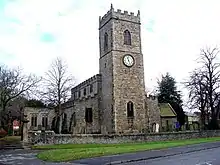 The main Parish church is now known as All Saints but was once called St. Mary the Virgin.[6] The original building dates from the mid 12th Century but was extended in 1284 by Antony Bek, the bishop of Durham. The tower dates from c.1430.[6] Features of interest include the Norman chancel arch, the monolithic columns of the nave (presumably from the Lanchester Roman station) and a Roman altar in the porch.[7]