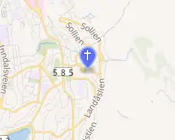 Landås Church (Norwegian: Landås kyrkje) is a parish church of the Church of Norway in Bergen Municipality in Vestland county, Norway. It is located in the Landås neighborhood in the Årstad borough of the city of Bergen. It is the church for the Landås parish which is part of the Bergensdalen prosti (deanery) in the Diocese of Bjørgvin. The white, concrete church was built in a fan-shaped design with a very modern style in 1966 using plans drawn up by the architect Ola Kielland-Lund. The church seats about 600 people.[1][2]