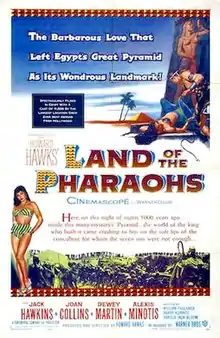 Land of the Pharaohs is a 1955 American epic film in Cinemascope and WarnerColor from Warner Bros., produced and directed by Howard Hawks, that stars Jack Hawkins as Pharaoh Khufu, also known as Cheops, and Joan Collins as his second wife Nellifer. The film is a fictional account of the building of the Great Pyramid. Novelist William Faulkner was one of the film's three screenwriters.