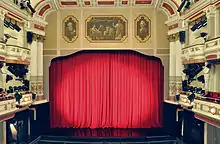 In 1882, the warehouse was added, in 1895 the administration building was added and the gas lighting was replaced by an electric system. In 1904/05 the theatre was rebuilt: New additions included a sophisticated interior with impressive ceiling paintings, golden ornaments and red upholstered seats in the large auditorium. The addition of the foyer wing in the style of romanticising classicism with a new façade gave the theatre a box office foyer, a main foyer and the installation of additional stairways for the tiers, in addition to the altered grand staircase. At the same time, the theatre was equipped with gas lighting. In 1893-1903, guest conductors included Alfred Hertz, Richard Sahla, Hans Chemin-Petit and Arthur Nikisch. A letter from Engelbert Humperdinck about the Altenburg premiere of his fairy-tale opera Hänsel und Gretel also dates from this period.[11] In 1903, Georg Göhler was appointed Court Kapellmeister and ensured further first performances in the opera repertoire: Offenbach's Tales of Hoffmann in 1903, Puccini's Madama Butterfly in 1910, Smetana's The Bartered Bride and Wagner's The Ring of the Nibelung in 1909. In the field of drama, the performance of Goethe's Faust should be highlighted.