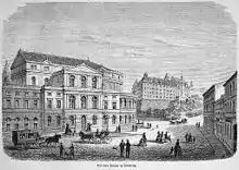 After the death of Friedrich III, Altenburg came to Duke Ernest II, Duke of Saxe-Gotha-Altenburg. In the former Schlossgartentheater,[2] operas and melodramas by the Gotha Hofkapellmeister Gottfried Heinrich Stölzel and Georg Anton Benda were performed, e.g. Benda's melodramas Ariadne auf Naxos and Medea in 1775. In terms of actors, Friederike Caroline Neuber[3] made guest appearances here for a long time around 1742 with her theatre company, and Konrad Ekhof from Gotha in 1775. In addition to plays by the young Lessing, plays by Diderot were also performed. When the theatre in the castle park was closed in 1779, there was an upsurge of civic initiatives: The stage in Pauritzer Gasse (1783-1842), later called "Altes Komödienhaus" (Old Comedy House), was converted by citizens of Altenburg from a barn into a "municipal theatre" with about 700 seats, including new types of stage equipment. Due to strong demand, mainly plays by Schiller were performed here. It was regularly visited by acting groups, e.g. in about 1818-1824 the company under theatre manager Sophie Walther and in 1820-1826 that of Carl Gerlach. The actor Carl Theodor Müller describes several engagements in Altenburg in his memoirs.[4]