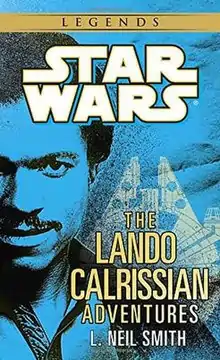 The Lando Calrissian Adventures is a 1983 trilogy of science fiction novels by L. Neil Smith. Set in the Star Wars Expanded Universe, the novels chronicle Lando's smuggling days before the events of the original Star Wars trilogy. The series has been described as "space pulp", and highlights the differences between Lando and Han Solo.[22] The books were released in July, October, and December 1983, and were the first Star Wars books released since The Han Solo Adventures (1979–1980); both trilogies were originally published by Del Rey, a division of Ballantine Books. They were also among the last novels in the franchise until Timothy Zahn's Thrawn trilogy was released in the early 1990s.[23] The series is set 3–2 years before the original Star Wars film,[24] and is brought into chronological context with the rest of the Expanded Universe in Rebel Dawn (1998), the final book of A. C. Crispin's Han Solo Trilogy.