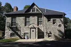 Langhorne Manor School, now known as Langhorne Manor Borough Hall, is a historic one-room school building located at Langhorne Manor, Bucks County, Pennsylvania. It was built in 1891, and is a small 1+1⁄2-story building with stone faced wood frame walls and a slate covered hipped roof in the Queen Anne style. It measures 33 feet wide by 43 feet deep. The roof features two eyelid dormers and a gable dormer with fishscale shingles. The school was converted to Borough Hall in 1959.[2]