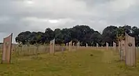 Also there is the Sainsbury’s Community Orchard with picnic tables, Verdun Oaks grown from descendants of acorns from the battlefield of Verdun, Cherry Avenue with trees bearing boards telling the stories of local soldiers, the carved soldier's bench, and the HMS Paragon memorial seat.[1][3]