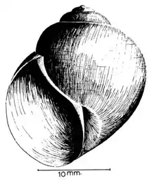 | Drawing of apertural view of the shell of Lanistes ovum | |