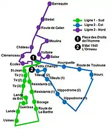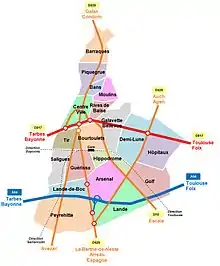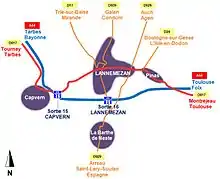 The orientation and location of Lannemezan, compared to some large French cities, is given in the following table[6] (distances are given as the fastest route by road):