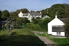 Lansallos takes its name from a monastery dedicated to St Salwys: this ancient parish has an ecclesiastical Rector,[4] whose church is dedicated to St Ildierna (in Latin: Sanctus Heldrenus), situated in the historic village at OS Grid ref SX172515.