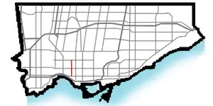 Lansdowne Avenue is an arterial road in Toronto, Ontario. It runs north–south and starts at Queen Street West and proceeds north to St. Clair Avenue West. Lansdowne Avenue is primarily a four-lane arterial road, with two lanes regularly used for motor vehicle parking.