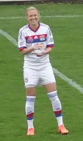 Lara Joy Dickenmann (born 27 November 1985) is a Swiss footballer who plays for German club VfL Wolfsburg, after seven-season stint with French club Olympique Lyonnais. She is a versatile footballer who can play as a midfielder or a full-back on either side of the field. She formerly played on the college level at the Ohio State University breaking many records and earning several player honors. In 2008, Dickenmann departed the university and joined D1 Féminine club Lyon.