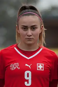 She made her debut for the Switzerland national team on 14 June 2019 against Serbia, starting the match.[4][5]