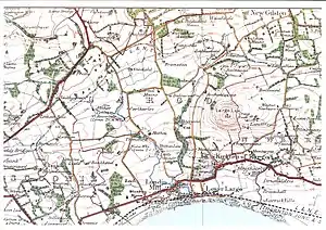 Near the eastern edge of the parish is situated Largo Law, height 953 ft.,[4] a conical hill of volcanic origin, whose summit provides an extensive view of the surrounding area and across the Firth of Forth to the Lothians. West of Largo Law is a deep ravine, through which flows a small burn, intersecting the parish from north to south for 2 miles.[2]
