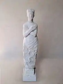 An installation Cross My Heart, St. Agostino, Pietrasanta, Italy, in 2011, consisted of twelve rather like sculptures of maidens with their arms crossed over the chest, made of white marble. A similar sculpture of a woman with arms crossed, is Listen to Your Heart, a granite sculpture with a height of 260 cm.