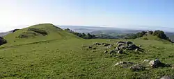 Rocky Ridge reaches an elevation of 2,024 feet (617 m). At the 1,760 feet (540 m) elevation, there is another trail that leads across EBMUD land. [lower-alpha 3] The trail leads to either the Valle Vista Staging Area on Canyon Road in Moraga, or south to the Chabot staging area in Castro Valley.[1]