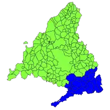 The Comarca de Las Vegas is a informal comarca, defined by the Guía de Turismo Rural y Activo,[1] edited by Directorate General of Tourism (Consejería de Cultura y Turismo) of the Community of Madrid, it covers some 1378,13 km² and is bound geographically by three rivers Tajo, Tajuña and Jarama. The capital is Aranjuez.
