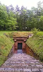 Lascaux II, an exact copy of the Great Hall of the Bulls and the Painted Gallery was displayed at the Grand Palais in Paris, before being displayed from 1983 in the cave's vicinity (about 200 m or 660 ft away from the original cave), a compromise and attempt to present an impression of the paintings' scale and composition for the public without harming the originals.[8][12] A full range of Lascaux's parietal art is presented a few kilometres from the site at the Centre of Prehistoric Art, Le Parc du Thot, where there are also live animals representing ice-age fauna.[13]