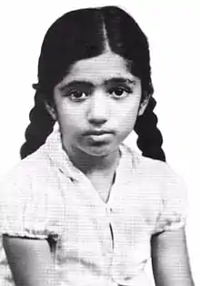 She received her first music lesson from her father. At the age of five, she started to work as an actress in her father's musical plays (Sangeet Natak in Marathi). On her first day of school,[23] Mangeshkar left because she was not allowed to bring her sister Asha along with her.[25]