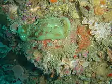 | Latrunculia (Biannulata) lunaviridis on a crab | |