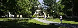 Lauder Business School has one campus, which includes a main building with classrooms, library, an administration building, auditoriums, a dining building and a student residence (in cooperation with Jewish Heritage Center). The main part which is located in the north has a size of 1.200 m² that provides enough space for lecture- and seminar rooms. Another 750 m² are used as office space. At the southern end of the park the student residence is located. They are all located in the Döbling district of Vienna, between Pyrkergasse and Hofzeile.