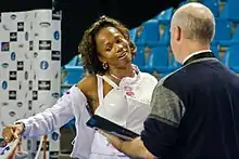 Laura Flessel-Colovic (born 6 November 1971) is a French politician and épée fencer who served as Minister of Sports from 2017 to 2018. Born in Pointe-à-Pitre, Guadeloupe, she has won the most Olympic medals of any French sportswoman, with five.[3] Before 2007, she was a member of the Levallois Sporting Club Escrime, and now works with Lagardère Paris Racing.[4] She is married and has one daughter.