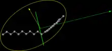 The geometry of the Laurdan molecule is as follows: the Dreiding energy, which is the energy related to the 3D structure of the molecule using the Dreiding force field,[16] is 71.47 kcal/mol. The volume is 377.73 Å3 while the minimal projection area is 53.09 Å2. The minimum z length is 24.09 Å, the maximal projection area is 126.21 Å2 and the maximum z length is 10.33 Å.[17]