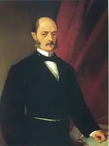 Laureano Figuerola y Ballester (4 July 1816, Calaf - 28 February 1903, Madrid) was a Spanish lawyer, economist and politician who served as the Ministro de Hacienda y Administraciones Públicas (now the Ministro de Economía, Industria y Competitividad) during the Sexenio Democrático. He is best known for officially establishing the peseta as Spain's currency.