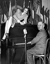 - "Lauren Bacall sits atop a piano while Vice President Harry S. Truman plays at the National Press Club Canteen". Harry S. Truman Presidential Library and Museum. February 10, 1945. Retrieved January 2, 2015.