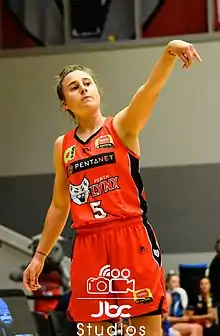 ![]() Mansfield puts up a jump-shot during the 2019/20 WNBL Round 11 match between the Perth Lynx and the UC Capitals. Photo: JBC Studios | |