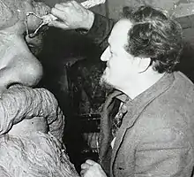 ![]() Laurence Bradshaw sculpting the bust for the Tomb of Karl Marx in Highgate Cemetery | |