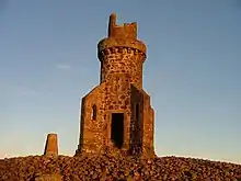 Johnston Tower was built to commemorate the Duke of Wellington's victory over Napoleon in the Peninsular War.[7] It is situated on the Garvock Hill alongside a wind farm. The neighbouring residence, Johnston Lodge, was built in 1780 by James Farquhar, MP for Aberdeen Burghs and later for Portalington.[8] The house was later owned by Lord Gardenstone.