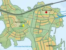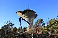 The Lauttasaari water tower was located on top of the Kotkavuori hill in Lauttasaari. It was built in 1958.[5]: 26 As soon as the tower was completed it became a local landmark, and later a kind of symbol of Lauttasaari.[2]: 68 The tower was the first mushroom-shaped water tower in Finland, and because of this, it was regarded as an architecturally and historically significant building.[3]: 1 [6] Several other mushroom-shaped water towers have later been built in Finland.[5]: 26