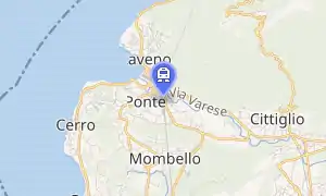 Laveno-Mombello railway station (Italian: Stazione di Laveno-Mombello) is a railway station in Italy. It is junction of the lines Luino–Milan and Luino–Oleggio. It serves the town of Laveno-Mombello, and is joined by a junction track to the Laveno-Mombello Lago railway station, managed by Ferrovienord.[1] No trains operate between the two stations, which are located less than 1 kilometre (0.62 mi) apart.