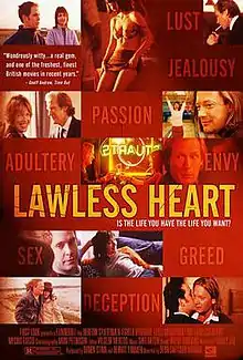 Lawless Heart is a 2001 British film directed by Tom Hunsinger and Neil Hunter. It had its world premiere at the Locarno Film Festival,[1] where it won the Prix CICAE / Arte. It also won Best Screenplay at the British Independent Film Awards in 2002, where it was additionally nominated for Best British Independent Film, Best Director, Best Actor (Bill Nighy) and Best Technical Achievement (editor Scott Thomas).[2] At the Evening Standard British Film Awards the next year, it was awarded Best Screenplay.[3] As of August 2020, 87% of the 53 reviews compiled by Rotten Tomatoes are positive, with an average score of 7.18/10. The website's critics consensus reads: "Unconventional and refreshing, this strikingly un-Hollywood film takes a quiet and heartbreaking look at the warmth and inspiration of friendships lost."[4]