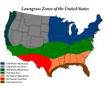 In a 2005 NASA-sponsored study, it was estimated that the area covered by lawns in the United States to be about 128,000 square kilometres (49,000 sq mi), making it the nation's largest irrigated crop by area.[1] Lawn care is thus a popular business in the United States; proper maintenance, construction and management of lawns of various kinds being the focus of much of the modern horticulture industry. Estimates of the amount spent on professional lawn care services vary, but a Harris Survey put the total at $28.9 billion in 2002 (approximately $1,200 per household using such services). In her book The Lawn: A History of an American Obsession (1994) Virginia Scott Jenkins traces the historic desire to kill weeds. She notes that the current rage for a chemically dependent lawn emerged after World War II and argues that "American front lawns are a symbol of man's control of, or superiority over, his environment."