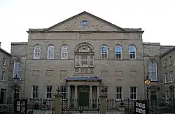 The building was originally built in 1819 as a Methodist chapel, called the Queen Street Chapel.[1] The architect is unknown but the chief mason was Joseph Kaye, the man who was also responsible for Huddersfield station.[1][2] It was opened on 9 July 1819 and the reporter in the Leeds Mercury described it as "one of the most handsome and commodious chapels in the kingdom; being capable of accommodating 3000 persons, and has been erected at an expense of from 8 to £10,000".[3] The chapel became a mission in 1906 until a decline in numbers saw the mission move out of the building in 1970 to a new building in King Street.[4] In 1973 the building was converted into an arts centre. However serious structural problems were discovered by Kirklees Metropolitan Council in 1975 and the Arts Centre was rehoused into Venn Street Arts Centre and the building remained vacant before being sublet to Novosquash Limited and converted to a squash club known as The Ridings. It also housed a restaurant and a The Catacombs Disco.[5][6] In 1989 the Kirkless Theatre Trust was given the go ahead to save the building from deterioration and launch Huddersfield's newest theatre. Building work for the theatre started in September 1992 and took 4 years to complete.