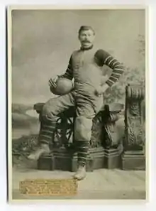 Ira Lawson Fiscus (1866-1949) was one of the first professional football players. He attended Princeton University, where his outstanding play at offensive guard earned him the title Samson of Princeton, before going on to play professionally with the Allegheny Athletic Association in 1891 and the Greensburg Athletic Association in 1893. His brothers Ross and Newell also played for Pittsburgh-area athletic clubs and were highly regarded as players.[1]